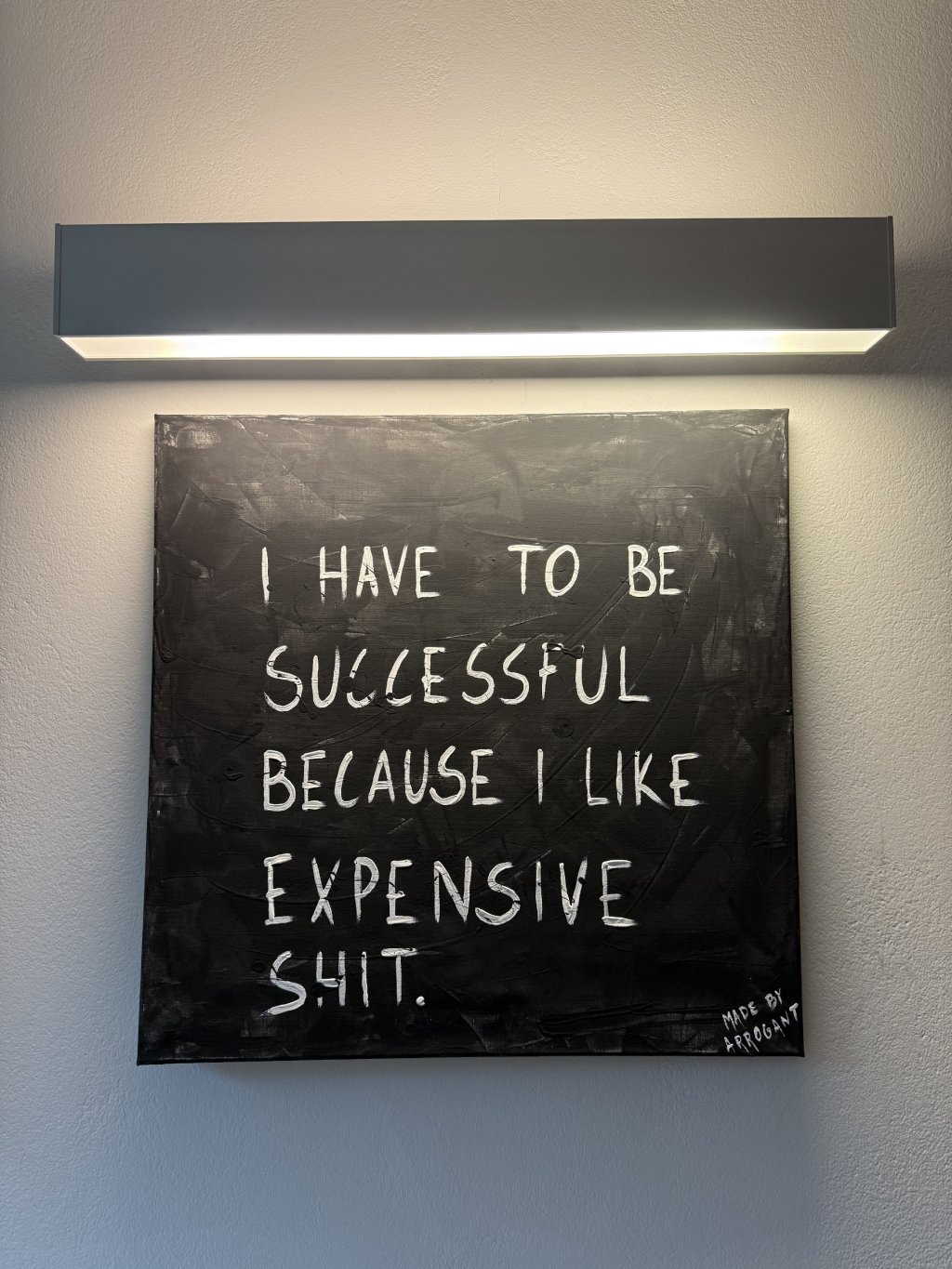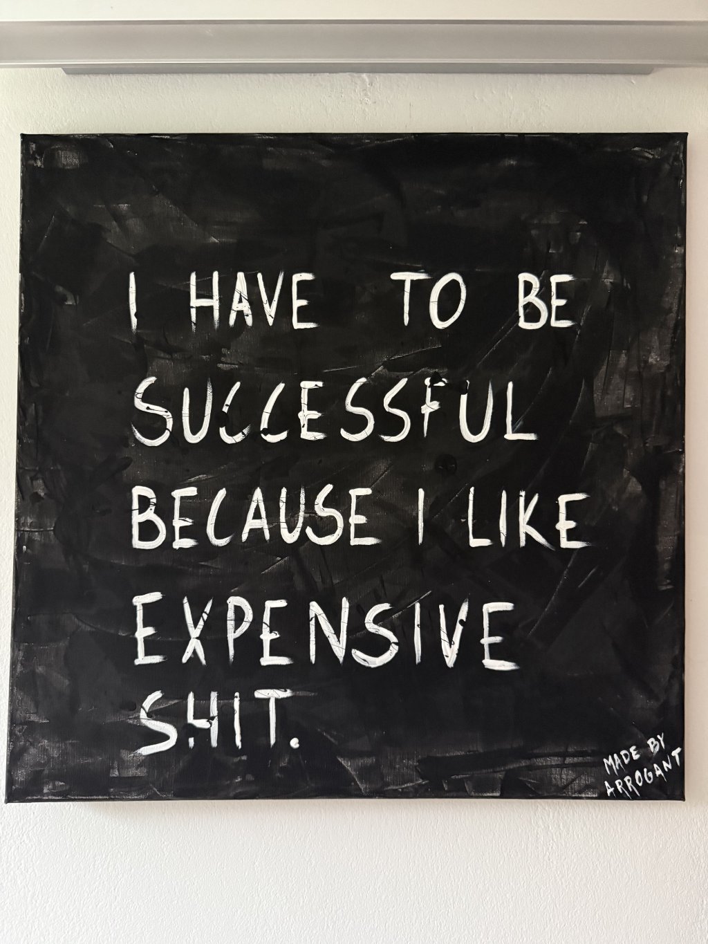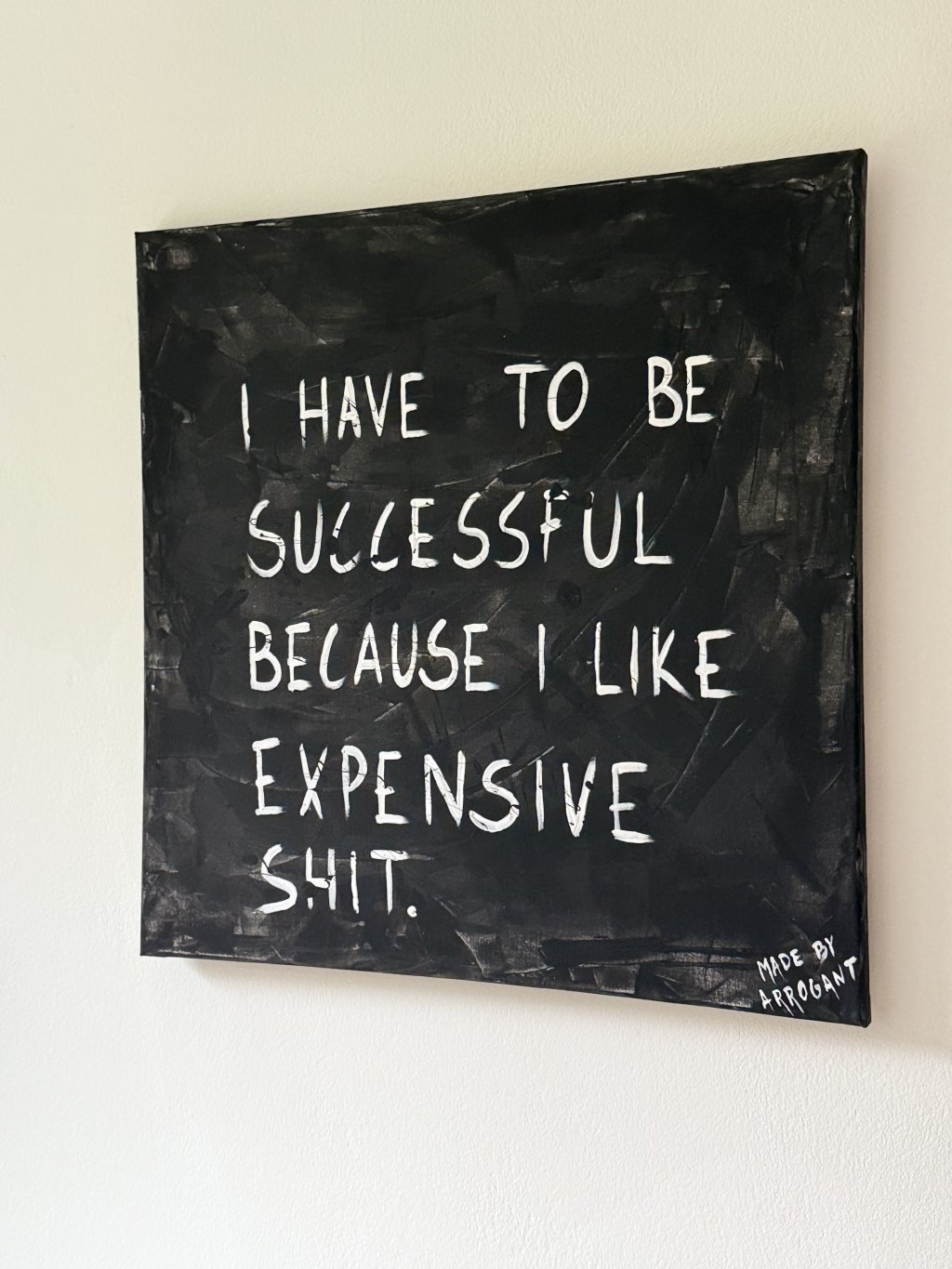 Originální ručně malovaný obraz v ikonickém stylu Made by Arrogant. Černý základ, bílý lettering a upřímná motivace.