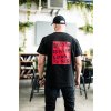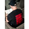 Černé bavlněné triko s motivem červené koženky na zadní straně s ručně designovaným motivem "Roses are red, I am going to bed". Triko je na přední straně doplněno o cedulku Made by Arrogant.