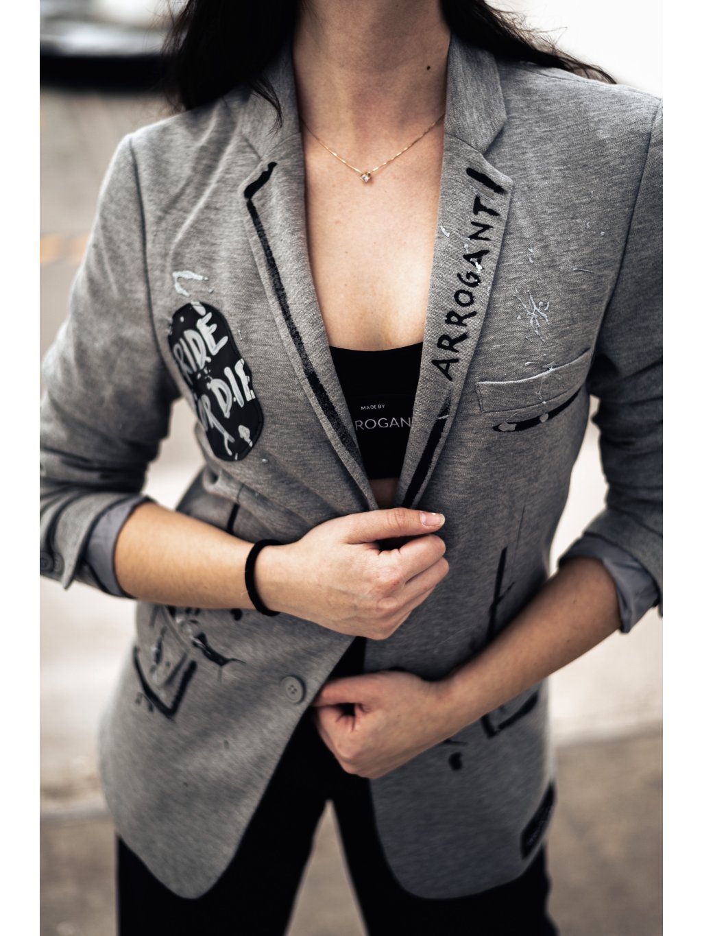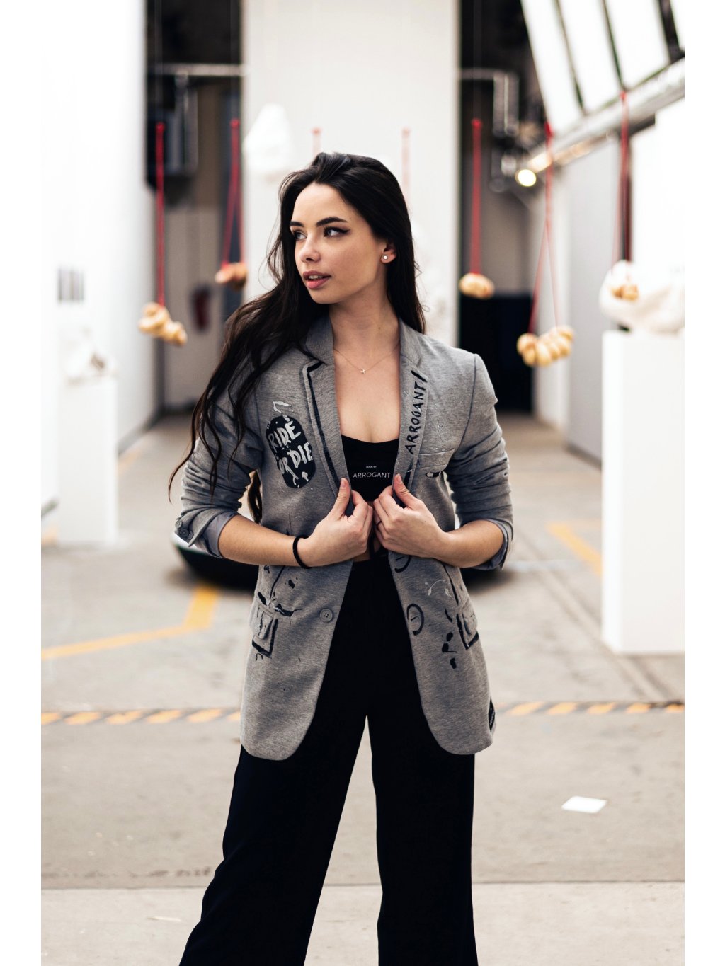 Šédé dámské extravagantní sako, které v kanclu nikdo nepřehlédne!