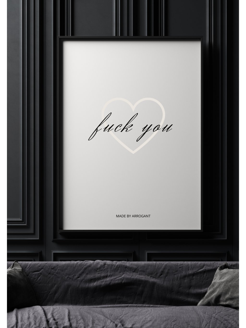 Arogantní poster má bílé pozadí a černo-šedý motiv.